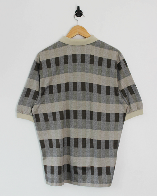 90s Nike Abstract Chequered Beige/Brown Polo-Shirt (S)