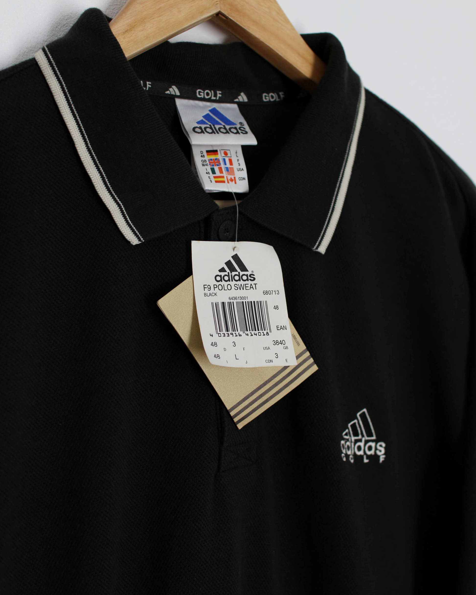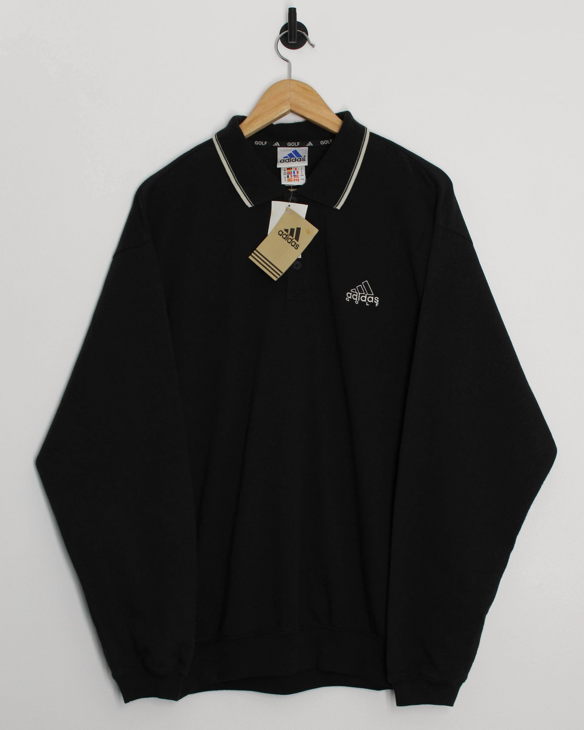 00s Adidas Black Long Sleeve Polo-Shirt Sweatshirt with Tags (L)