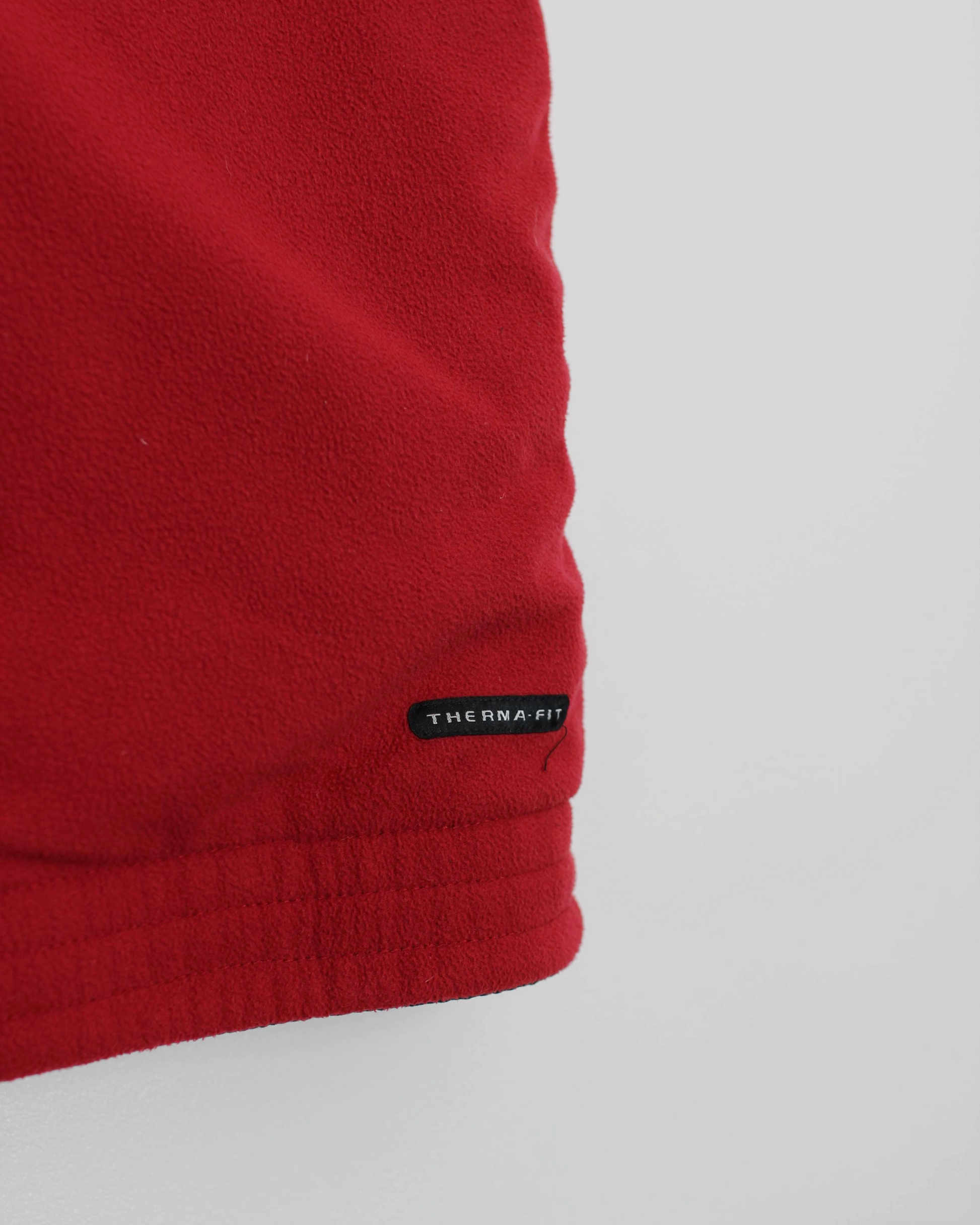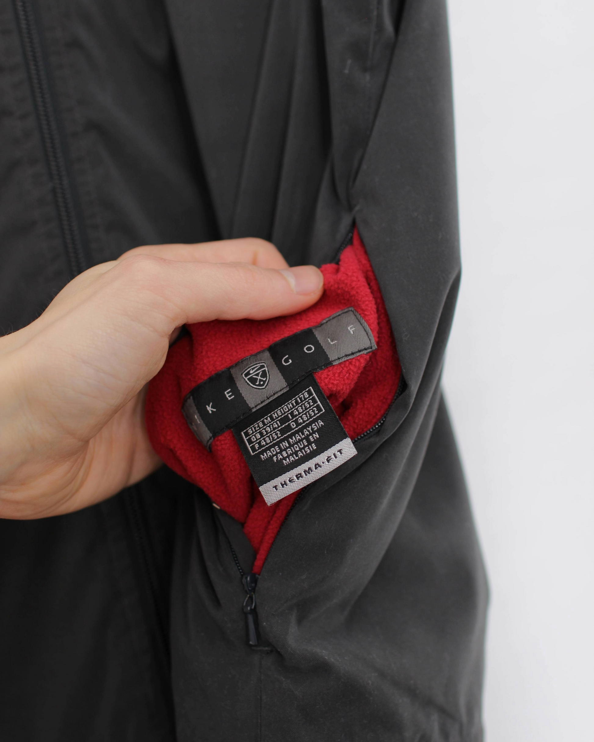 This 00s Nike reversible golf vest offers two clean looks in one - matte black on one side with a red Swoosh at the chest, and deep red fleece on the reverse with black trim and a subtle Therma-FIT tab. The full-zip front, stand collar, and elasticated hem keep the fit neat and functional, while both sides stay minimal enough to layer over polos or mid-weight knits.