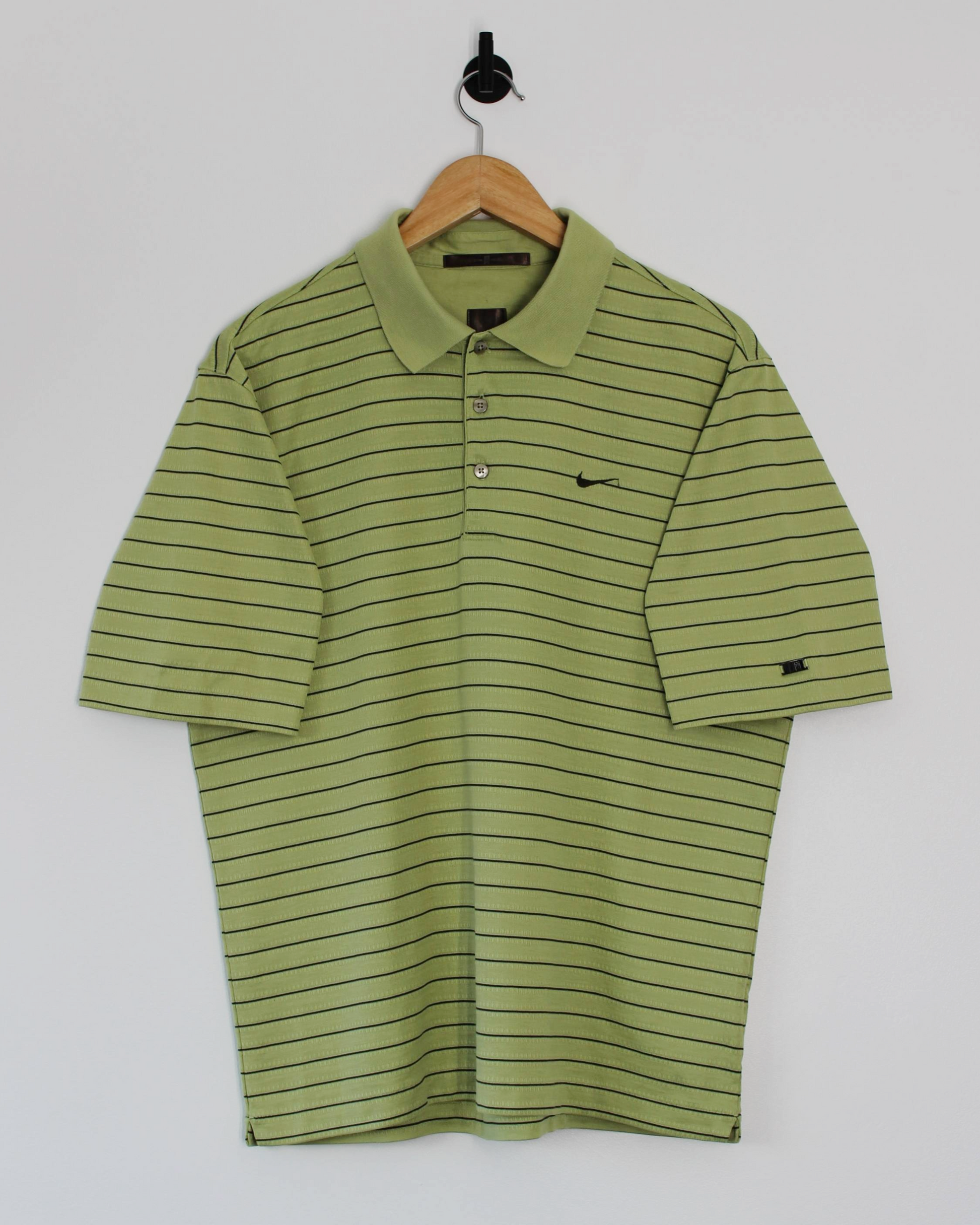 00s Nike Tiger Woods Light Green Striped Polo-Shirt (M)