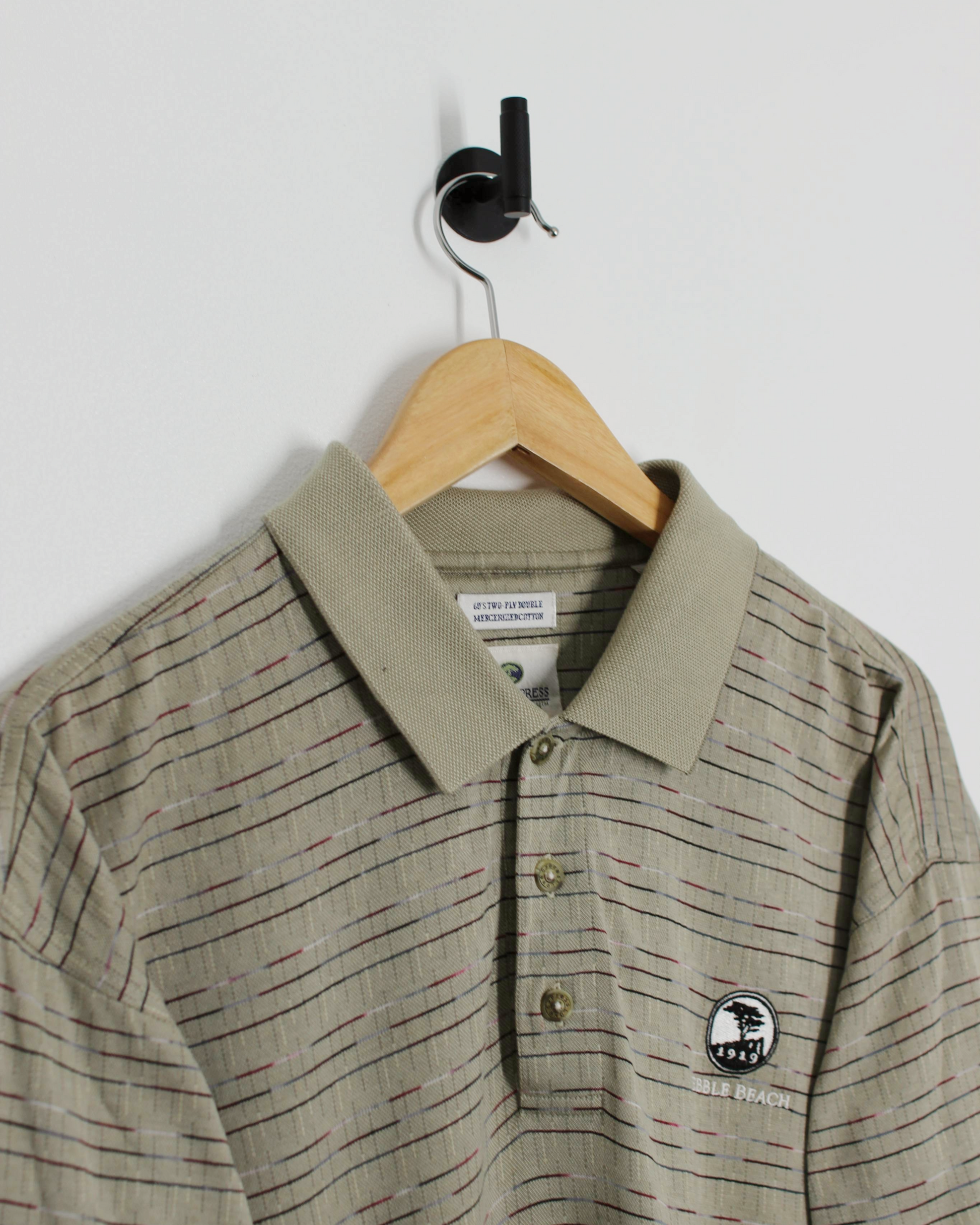 00s Pebble Beach Beige Patterned Polo-Shirt (L/XL)