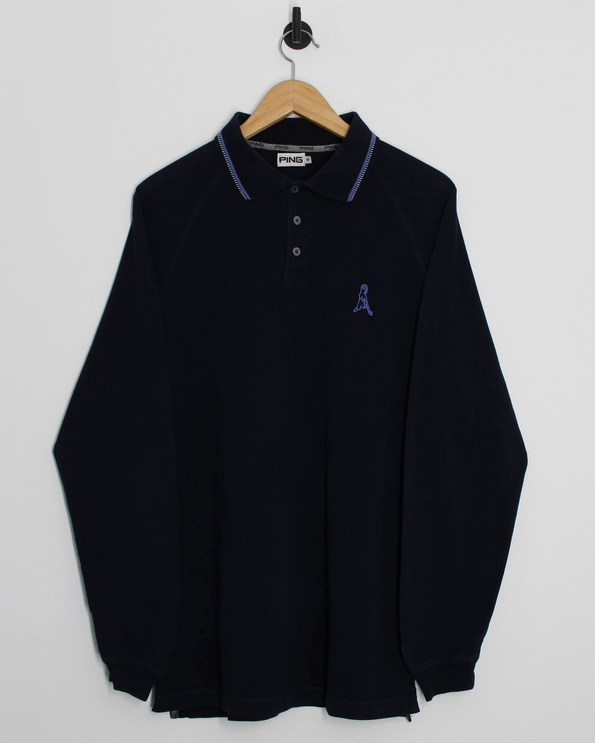 00s Ping ‘Mr Ping’ Logo Navy Long Sleeve Polo-Shirt (M)