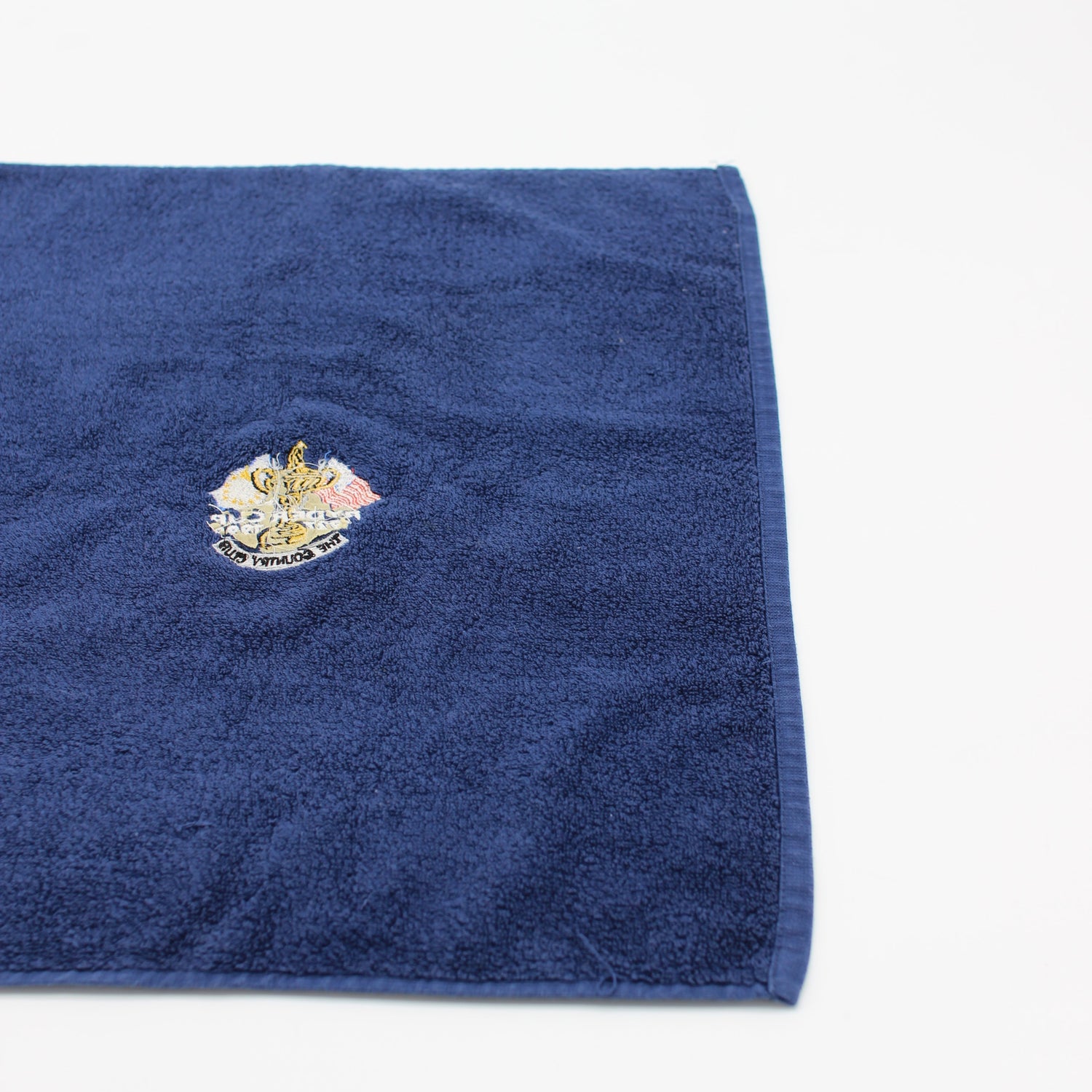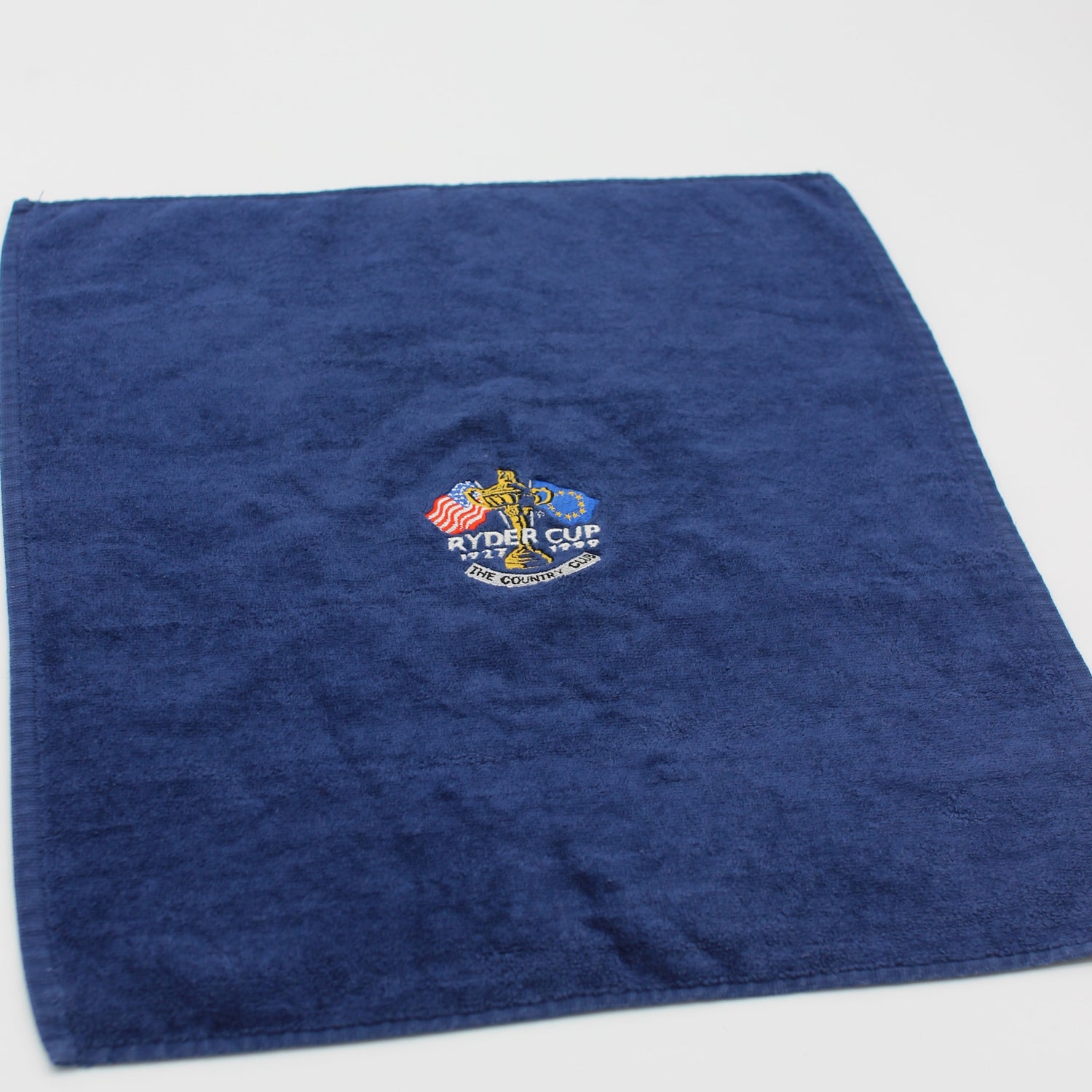 Official 1999 Ryder Cup golf towel in navy, featuring the tournament logo embroidered at the centre. Clean and well-preserved, with no visible signs of wear on the front. Soft cotton construction with a durable, textured finish.