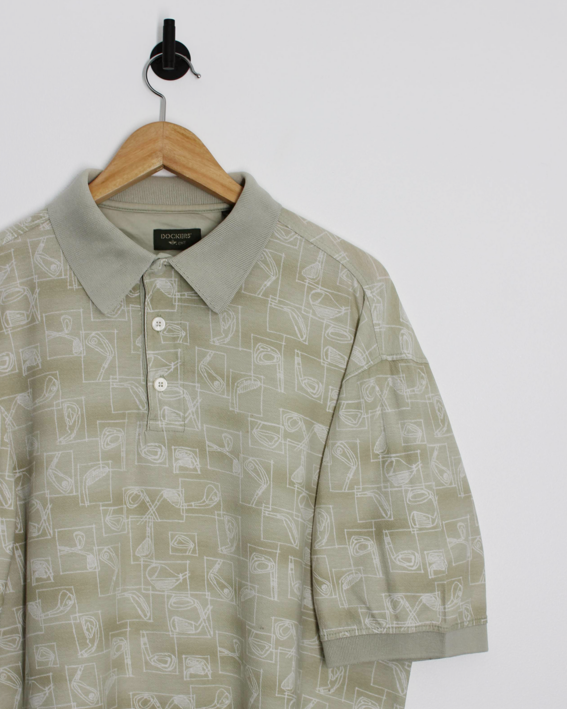 90s Dockers Abstract Golf Club Illustrations Polo-Shirt (M)