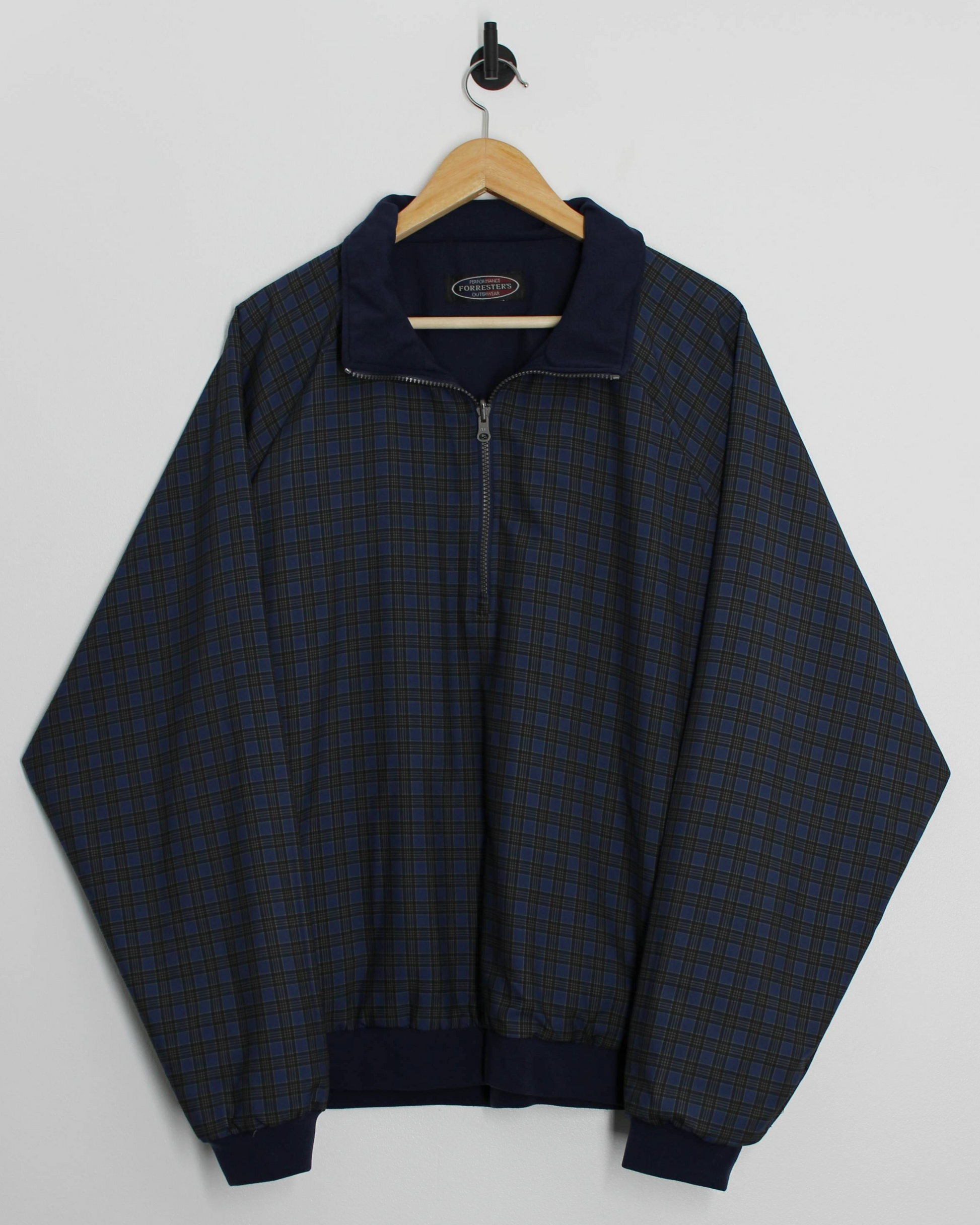 90s Forresters Reversible Navy/Plaid Quarter Zip Windbreaker (L)