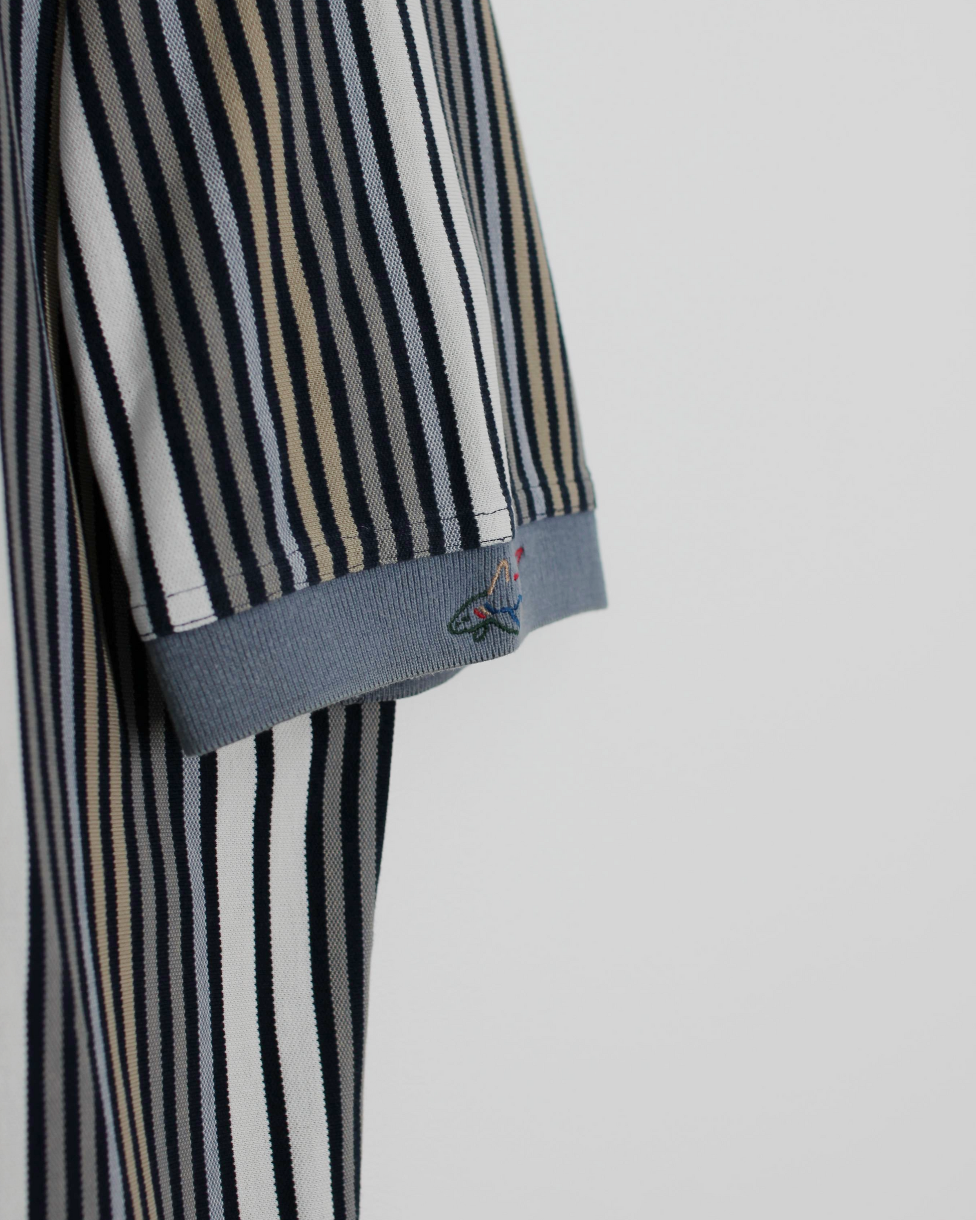 This piece captures the bold, expressive style of 90s golf fashion while maintaining the clean tailoring of a classic polo. With its eye-catching stripe pattern and premium Greg Norman detailing, it’s both a statement piece on the course and a standout in any vintage sportswear collection.