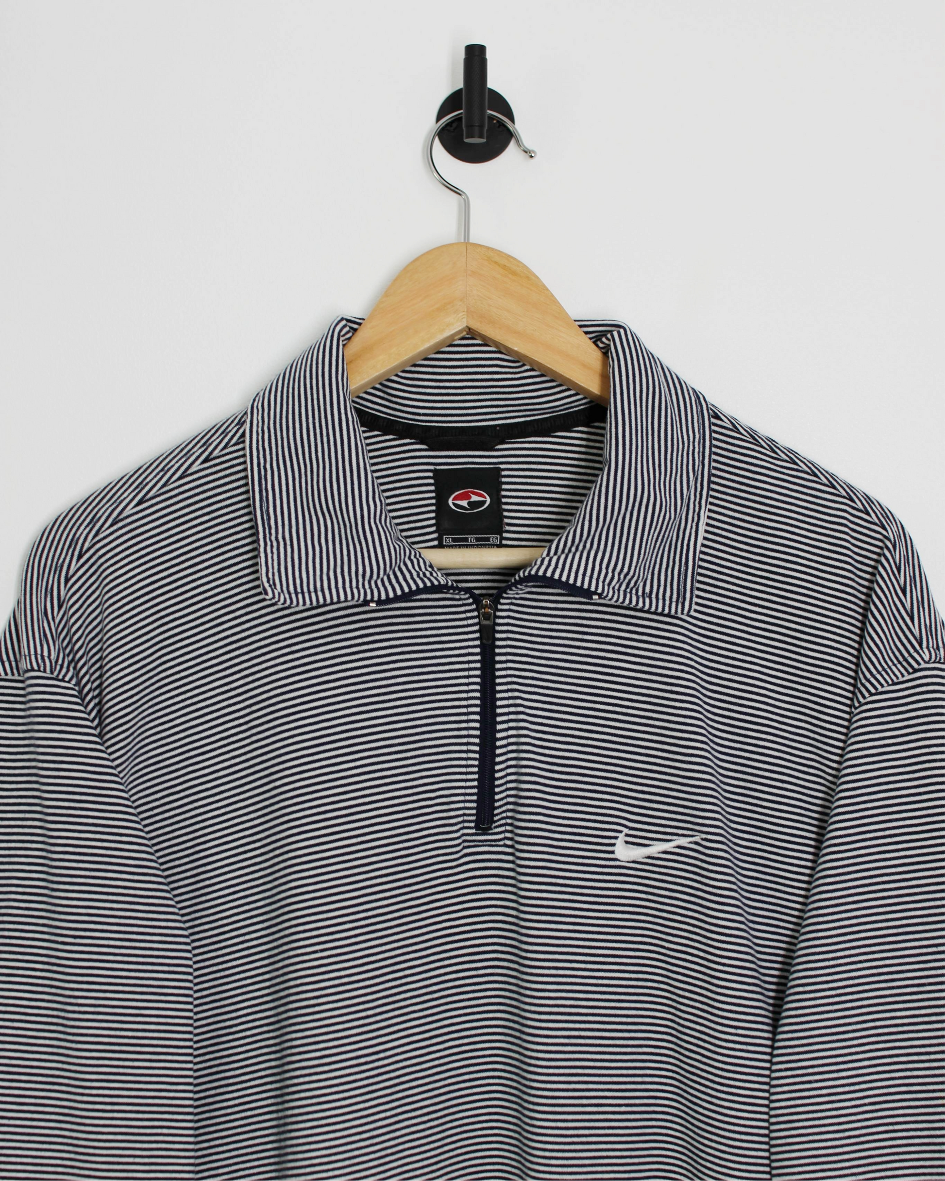 A standout from Nike’s late-90s golf collection, this piece captures a shift toward modern, technical design with a lifestyle sensibility. The zip-front silhouette gave players a fresh alternative to the standard polo - functional yet forward-thinking. Today, it reads as effortlessly versatile, bridging golf heritage with a street-ready look that still feels timeless.