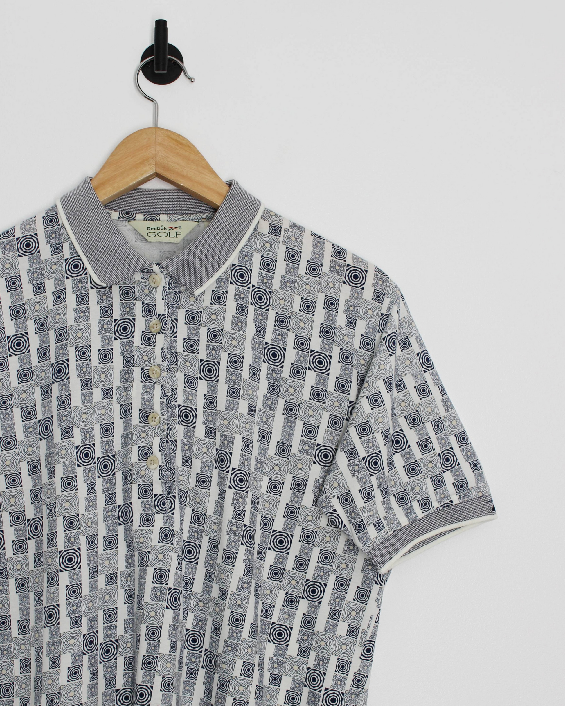 90s Reebok White/Grey Abstract Polo-Shirt (XS)