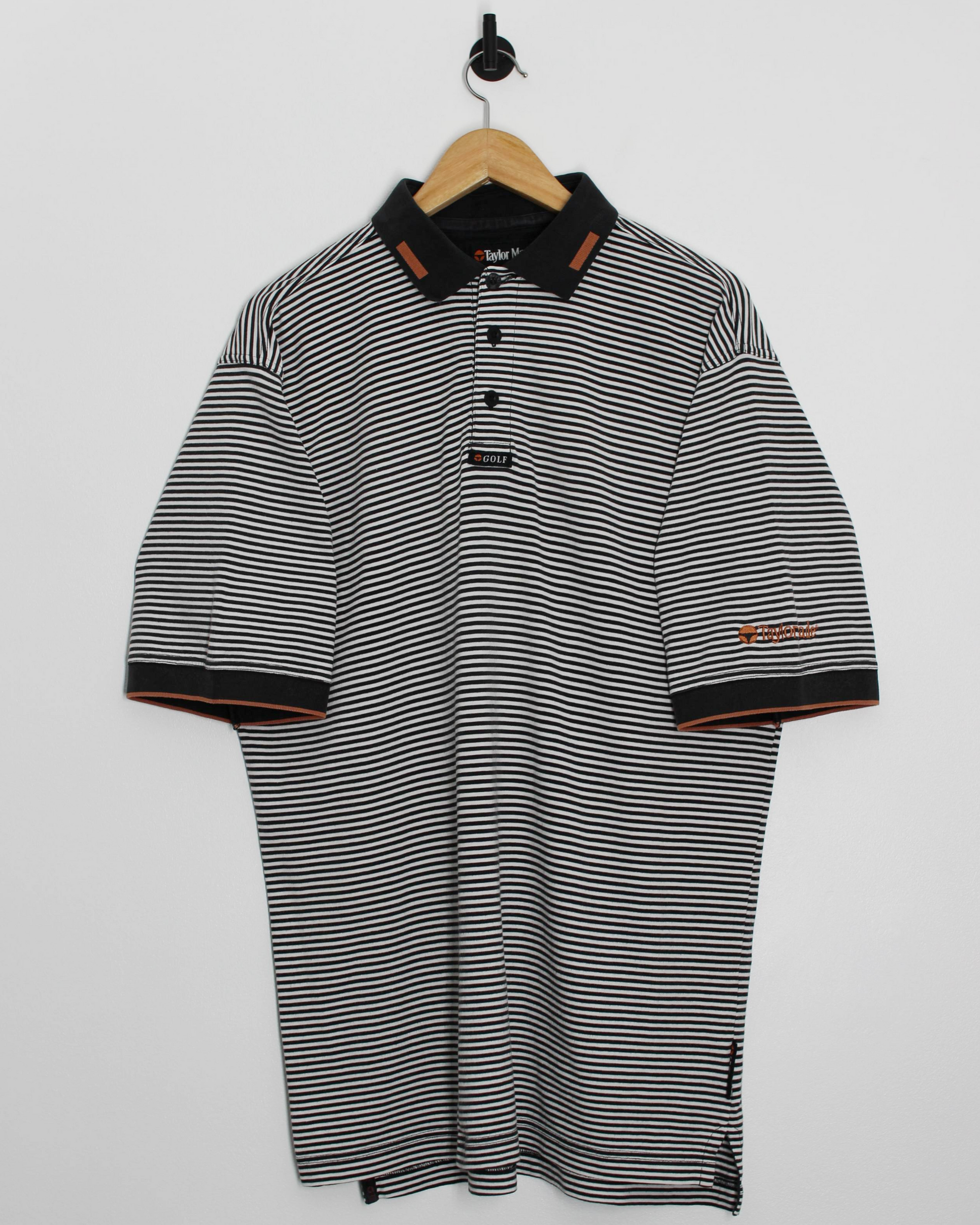 90s TaylorMade Black/White Striped Polo-Shirt (L)