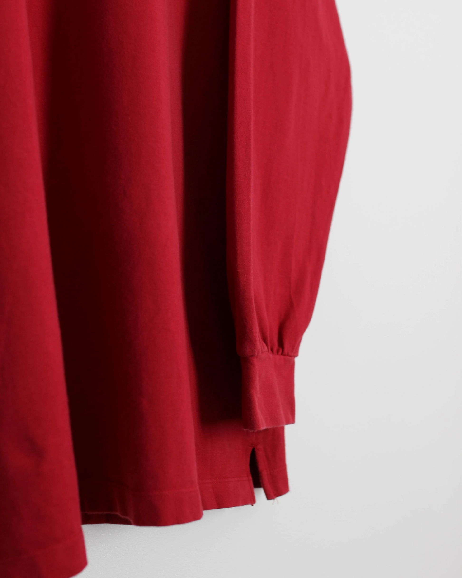 A 90s Tiger Woods long sleeve mock neck in bold red with a black upper panel and collar, finished with subtle red piping. The yin yang-inspired colour blocking gives it a sharp, balanced look, while the embroidered Swoosh logo sits at the back neck and the Tiger Woods yin yang emblem is placed on the chest. Cut from soft cotton with ribbed cuffs and a relaxed fit, it’s a lightweight yet durable piece designed for comfort on and off the course.