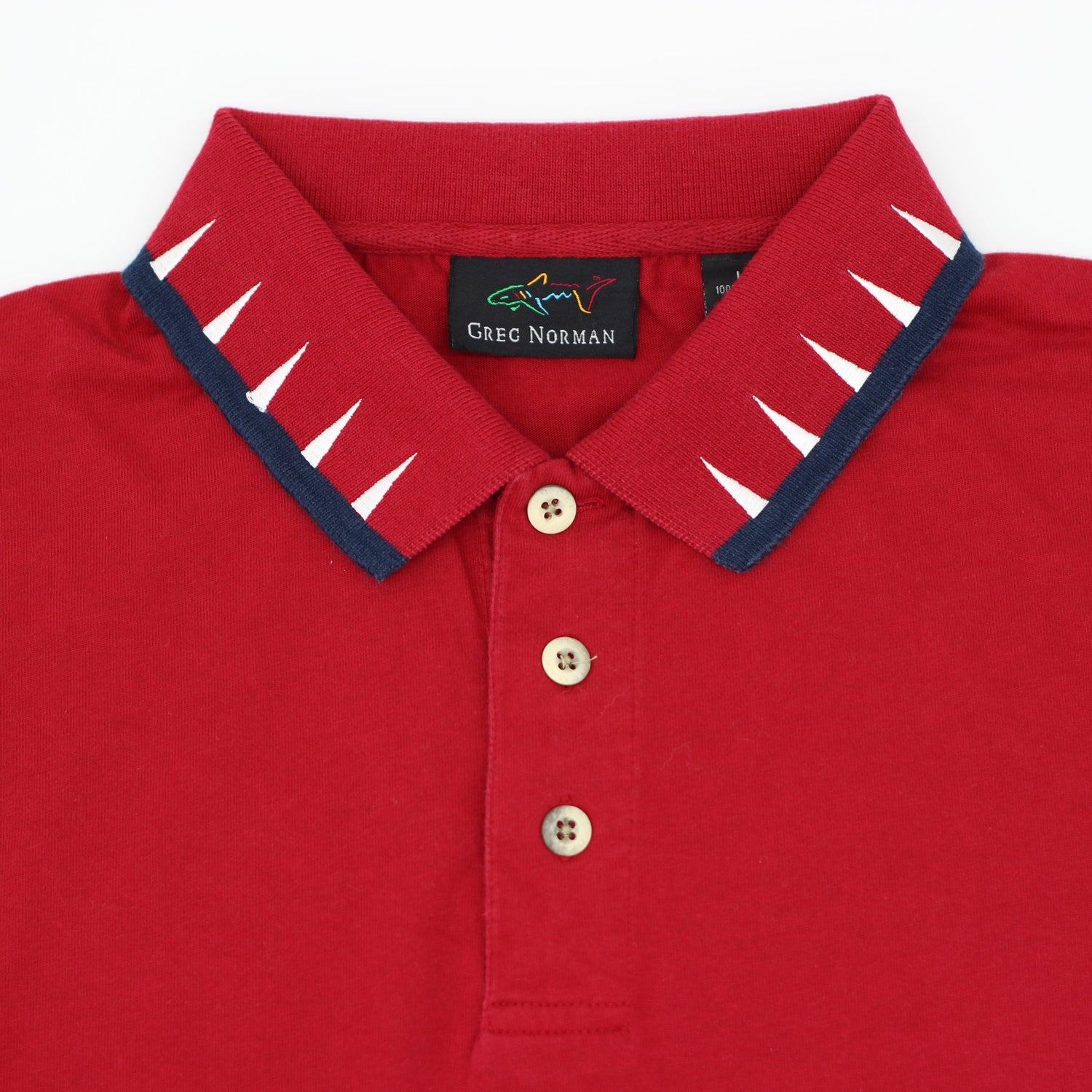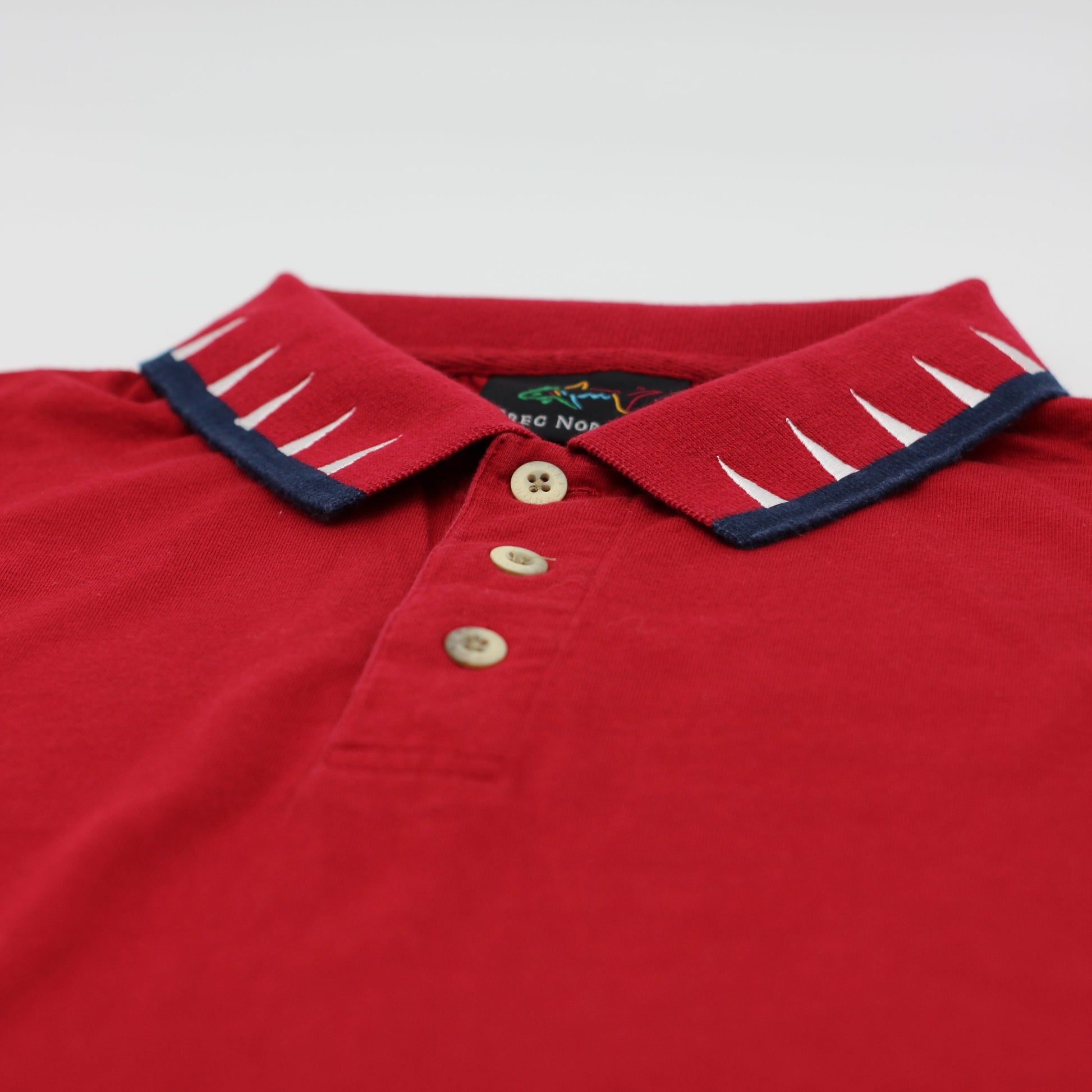 Check out this red Greg Norman Polo from the 90s – a standout piece that blends comfort, character, and classic golf heritage.